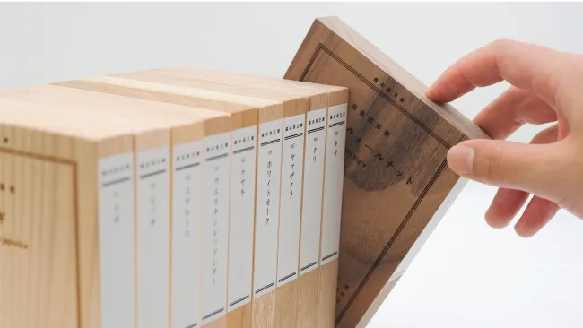 実際に触れて、比べられる樹種・加工処理の木材サンプルのご紹介です。