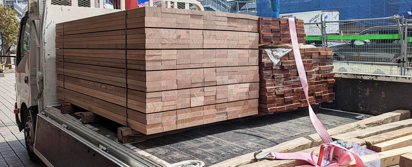 全国の材木業事業社のネットワークを活かして木材を調達しています。変わった材やストーリー性のある材もご案内できます。